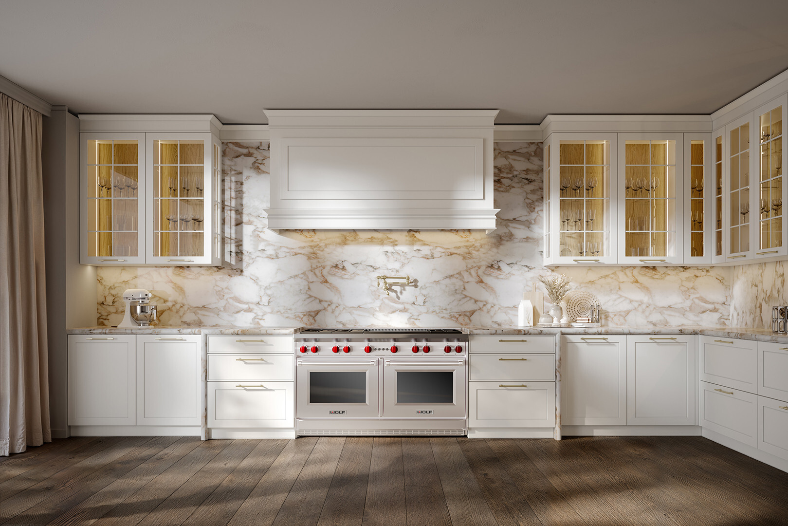 This kitchen brings together classic Italian elegance, contemporary comfort, and masterful woodworking to create spaces that feel luminous, welcoming, and gracefully timeless.