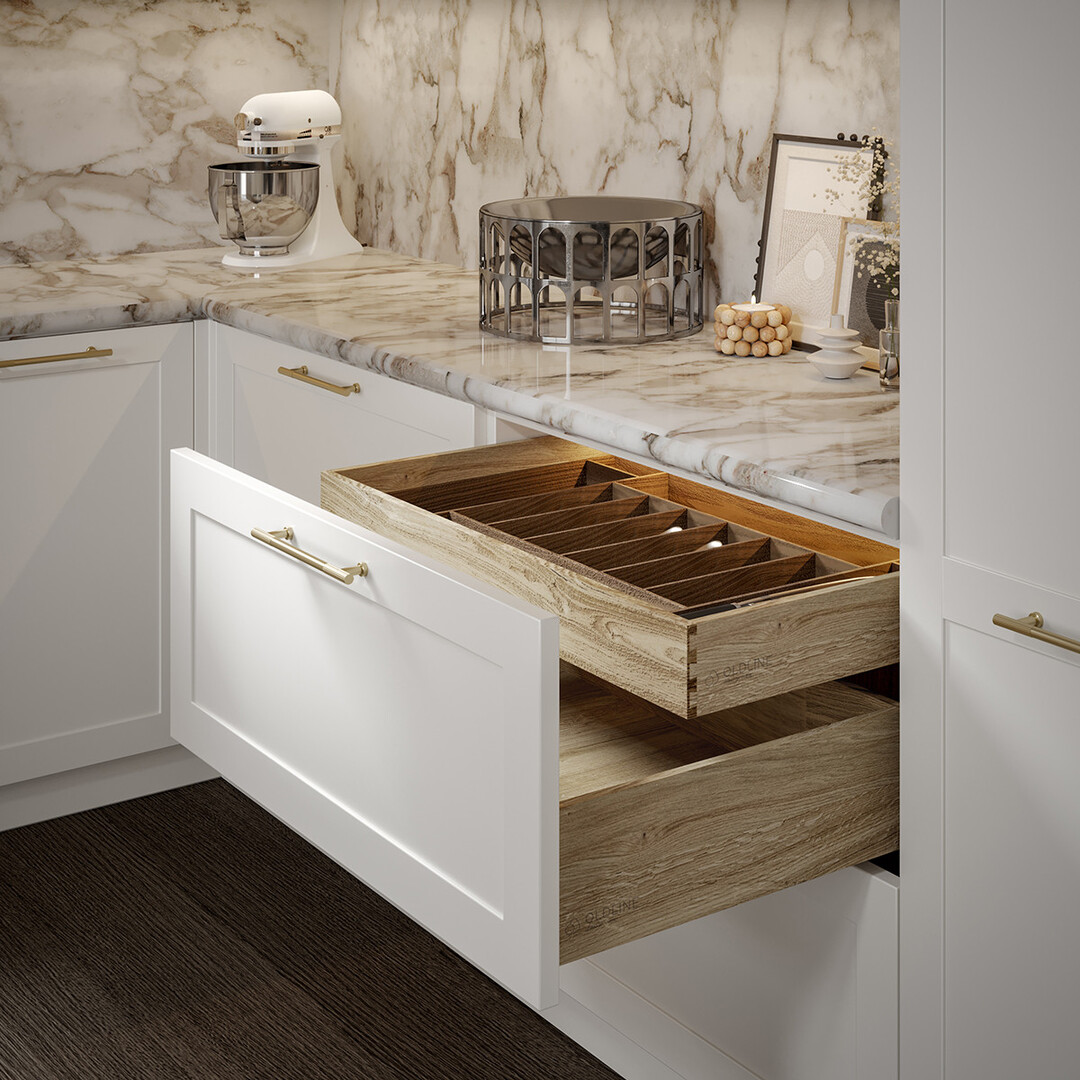At the heart of Dolce Vita by Old Line is a celebration of balance, between open, luminous design and practical planning; between material richness and visual restraint; between everyday comfort and refined sophistication. Islands with elegant seating blend seamlessly into the space, while glass‑front cabinetry punctuates wall compositions with rhythm and visual depth, offering curated display opportunities for your most cherished objects and tableware